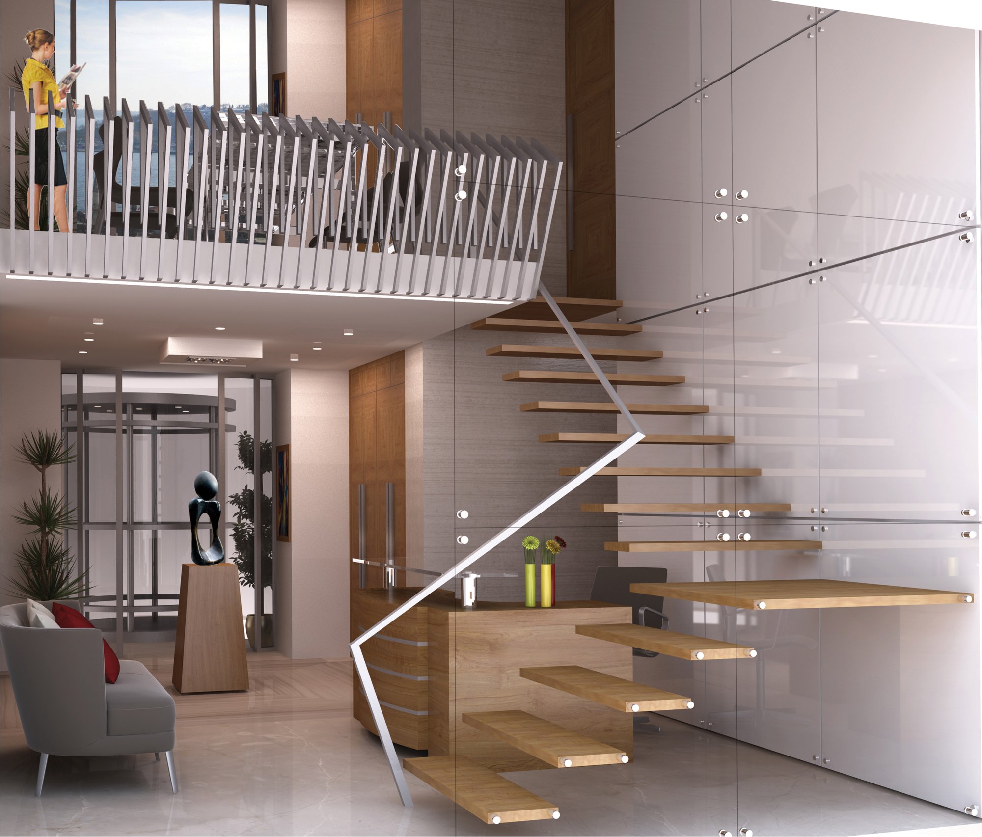 This spacious loft begged for an interior concept that prioritized the breathtaking panoramic view of the city while at the same time making ample use of a staircase, allowing the room to breathe. This doublex was conceptualized for use as a home office.
